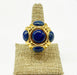 The Marge" is an elegant cocktail ring with a 5mm Lapis stone, crafted with a 14K gold plated brass band.