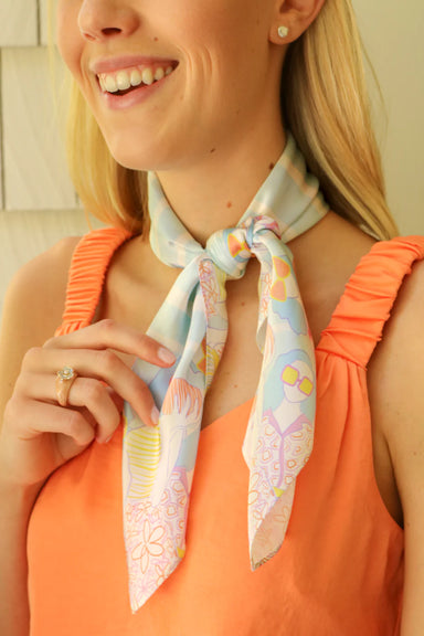 The Connie is a 24" square scarf, perfect for hair, neck, or purse ties. Print is visible about 50% on the back side Each scarf is printed on It...