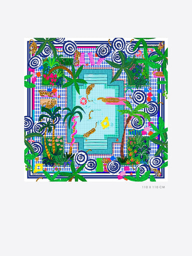 Silk scarf with tropical print. Measurements 110 x 110 cm.