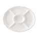 From our Berry & Thread Collection - With a handy center vessel for dipping and four compartments trimmed with a scalloped edge, and our thread and berry motif, this platter elevates the humble crudité offering to something much more elegant. Set against our luxe whitewash backdrop, whipping up a beautiful appetizer is a snap - we like to play with the season's brightest stars to create a vibrant palette of color - from spring radishes to whimsical pea tendrils and deep purple carrots.