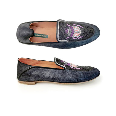 Suede calfskin. The velvet aspect comes from split leather found in the full grain bottom layer. Finished with a full grain calfskin lining. 3" heel