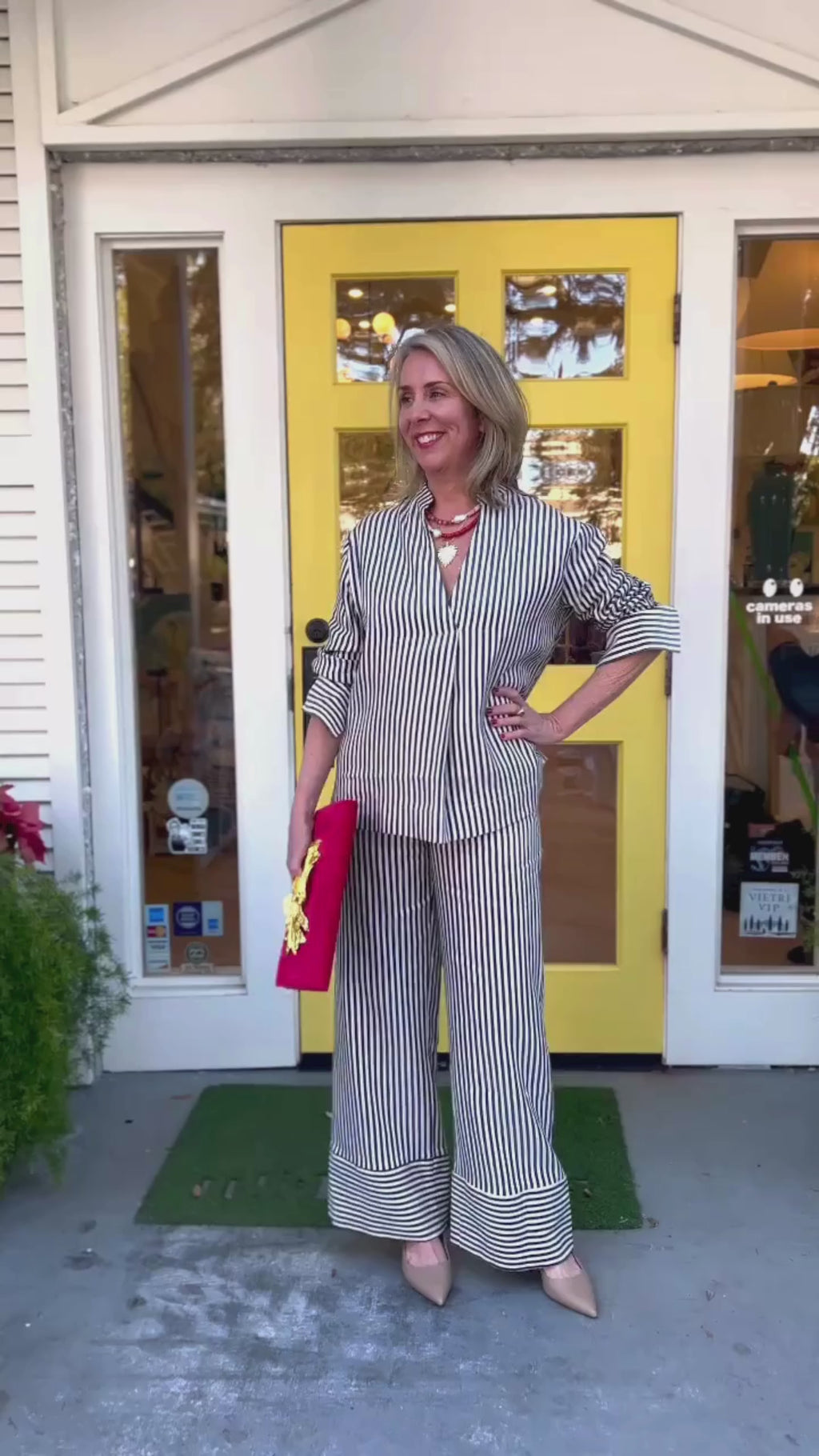 Ottod'ame Striped Pants - Cream & Navy
