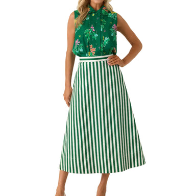Elevate your seasonal style with this charming midi skirt featuring a bold green stripe that's perfect for St. Patrick's Day celebrations or Master...
