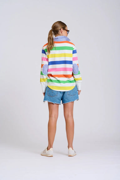 Elevate your casual wardrobe with this vibrant rugby sweatshirt featuring bold stripes and a striking blue and white collar. Crafted from a comfort...