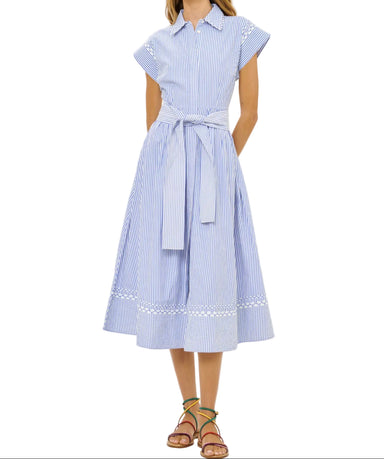 A new silhouette joins the collection. The Harper is a study in structure and ease, crafted from crisp stripe poplin with a smocked cinch-tie waist...