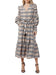 This Mariyah Stripe Print Dress in khaki offers a refined silhouette with its ruched sleeves and a detachable belt that defines the waist elegantly. The fall plaid pattern adds seasonal charm, while the tiered ruffle bottom brings subtle movement and texture, perfect for sophisticated autumn occasions. Machine wash cold, hang to dry.