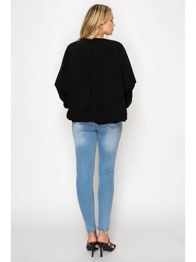 Elevate your wardrobe with the Lior Zella Raglan Sleeve Front Zip Jacket in Black. Featuring a sleek zip-front design and comfortable raglan sleeve...