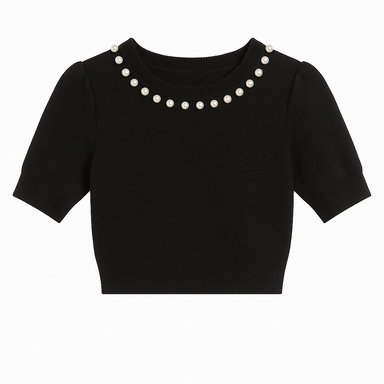 Elevate your wardrobe with this Pearl Neck Line Cropped Top, featuring a graceful pearl neckline and subtle puff sleeves for a refined silhouette. ...