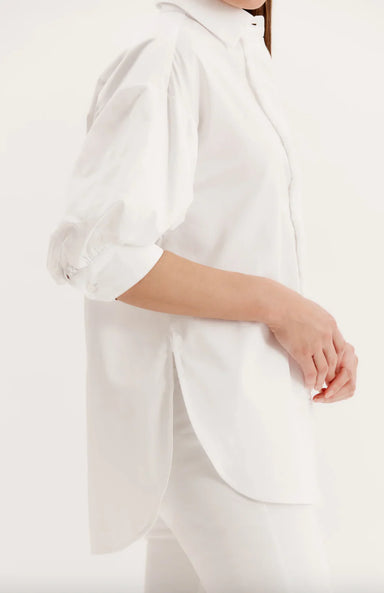Puff sleeves Button front Fringe on placket 100% Cotton Machine wash cold, line dry