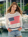 Make a patriotic statement with the American Flag Mesh Sweater, a breezy knit that’s perfect for summer festivities. Featuring a bold American flag design and sporty red, white, and navy accents, this lightweight layer brings standout style with a laid-back vibe. Its open mesh construction keeps things cool while adding texture and charm to your look. Whether you're lakeside, dockside, or fireside, this sweater is ready to celebrate.