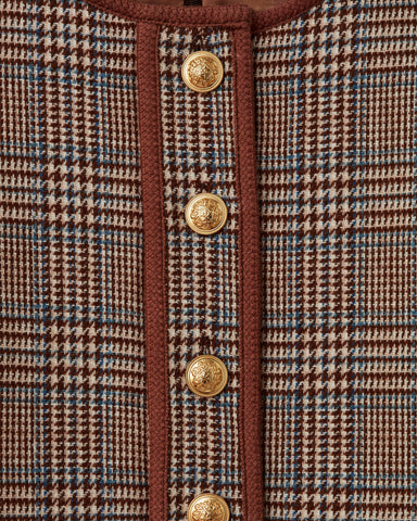 The Gabi Dress captures the charm of a wondrous find—tailored and spirited, with a plaid that calls to mind crisp air and quiet strolls. Its droppe...