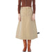 It's crafted from a cotton poplin reminiscent of a trench coat. Topstitching enhances the skirt. It features two pockets on each side. It has a flared cut and a high waist. Machine wash cold, hang to dry.