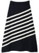 The Manelle skirt is a long, form-fitting wool and cashmere skirt, crafted entirely in our workshop. Wide stripes run diagonally across the piece.