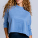 • Boxy mock neck 3/4 sleeve top in solid color with rib hem accents