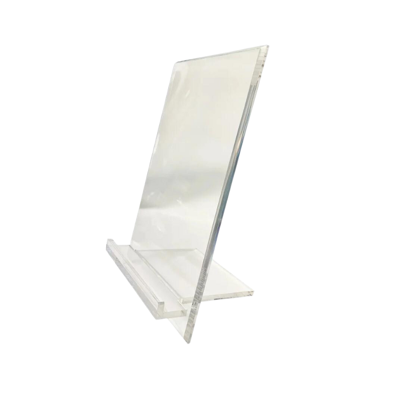 Display small art, a tablet or book with our Acrylic Easel. Our easel is made in two pieces of clear acrylic that slip together and pull apart for easy set-up and flat storage.