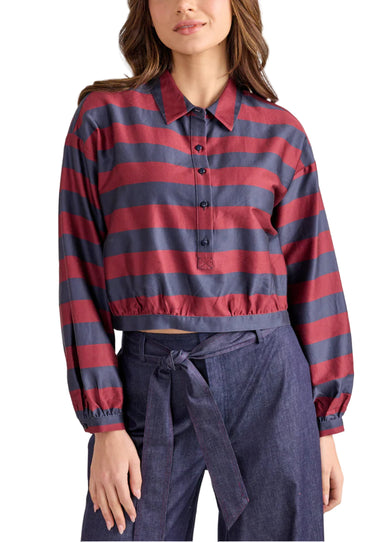 The Sean Top combines sophisticated style with playful flair. This long sleeve, cropped blouse features a button-front design and is crafted in a u...
