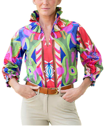 The Harper top is made to dress up or down with its double ruffle collar and easy push up sleeves. It’s tunic length is perfect to wear untucked or...