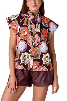Embrace cozy charm with the Crosby by Mollie Burch Billie Blouse in Rocky Top. Featuring playful cap sleeves and a flirty ruffle collar, this blous...