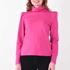 The Tessa Turtleneck in Rose Violet is a sleek essential with refined detailing. Designed with a softly gathered turtleneck, subtle puffs at the sh...