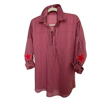 Elevate your gameday look with the Caryn Lawn Preppy Star Elbow Top in Red Stripe. Featuring subtle star details on the elbows, this refined piece ...