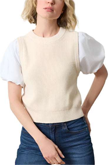 The Mixed Media Pullover Sweater blends sweater knit with crisp white poplin for an effortlessly polished look. Knit in our mid-weight eco-cotton b...