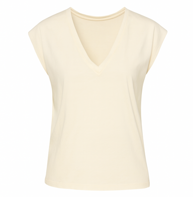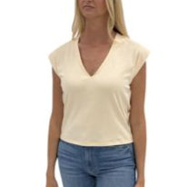 The Anna Cate Gwynn Tee in Ivory features a refined V-neck and subtle cap sleeves, crafted from 100% cotton for breathable comfort. Its slightly cr...