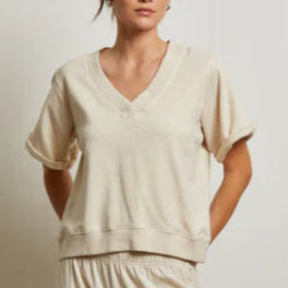 The fabric is ultra soft and the vibe minimal, punctuated with subtle tonal banding at the sleeves that lends an understated sporty chic to the ent...
