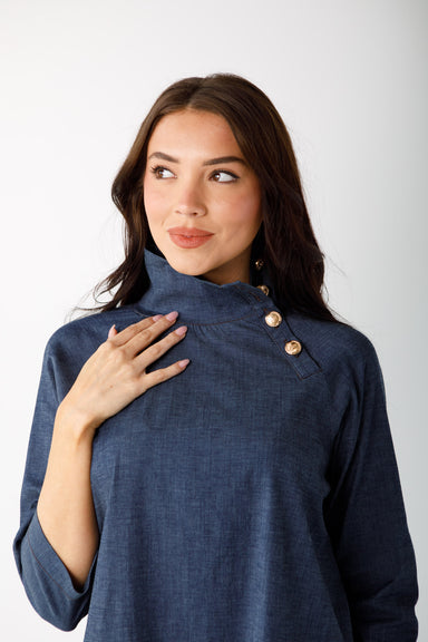 Crafted from comfortable stretch denim fabric, the Holly Shae Georgia Top will quickly become a staple in your wardrobe. The tunic top features gol...