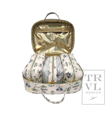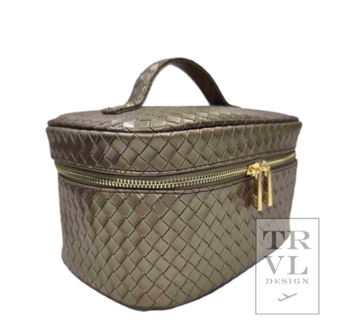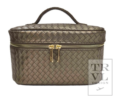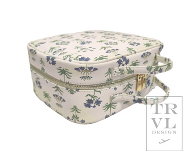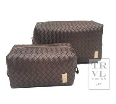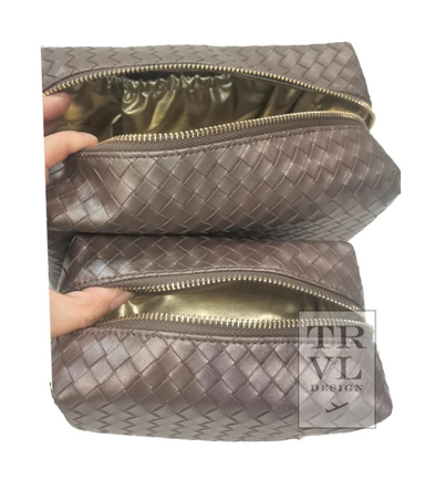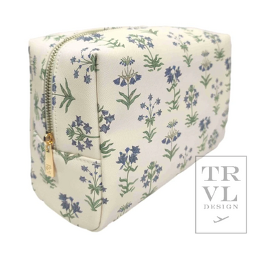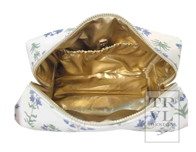 Soft construction cosmetic bag is perfect for your makeup, brushes, skincare & more. Bamboo accent zipper pull. Stain Resistant and wipeable in...