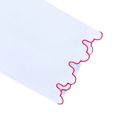 100% Linen Hand embroidered Contrast stitching on scalloped edge13" x 18" *Machine wash, cold water, delicate cycle, lay flat to dry*Press with ste...