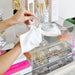 The Glitzy Glove is a hand-crafted jewelry polishing mitt that removes tarnish from silver, gold and brass metals. When using the Glitzy Glove, you will be able to see the tarnish go straight from your jewelry to the cloth. Contains one mitt.