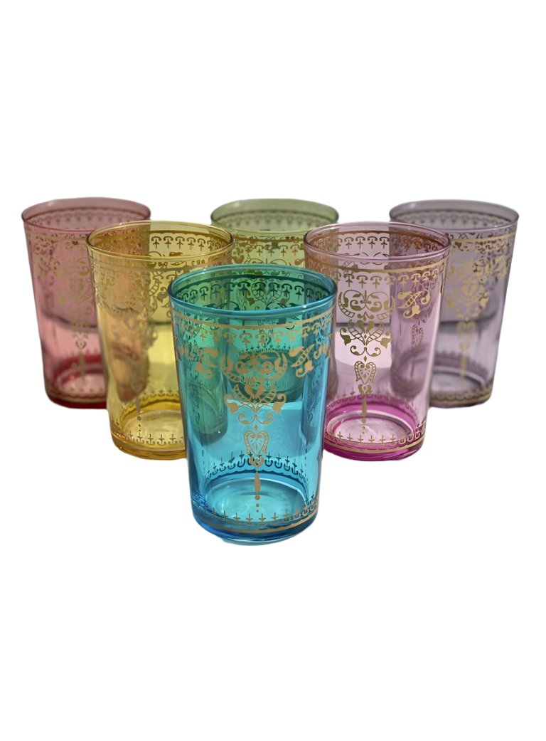 Beautiful set of 6 tea glasses with a soft and elegant gold design