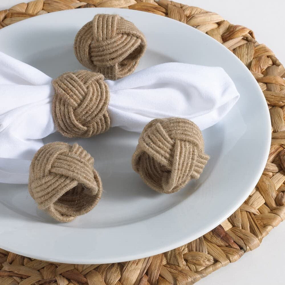 Classic design Braided jute napkin ring sets for everyday entertaining. Set of 4. One piece