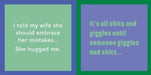 The Original Double Sided cocktail napkin has laugh out load, hilarious statements on both sides of the napkin with a fun contemporary design on the inside.
