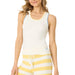 - Features blue and yellow embroidered trim and a mini palm tree at the hem