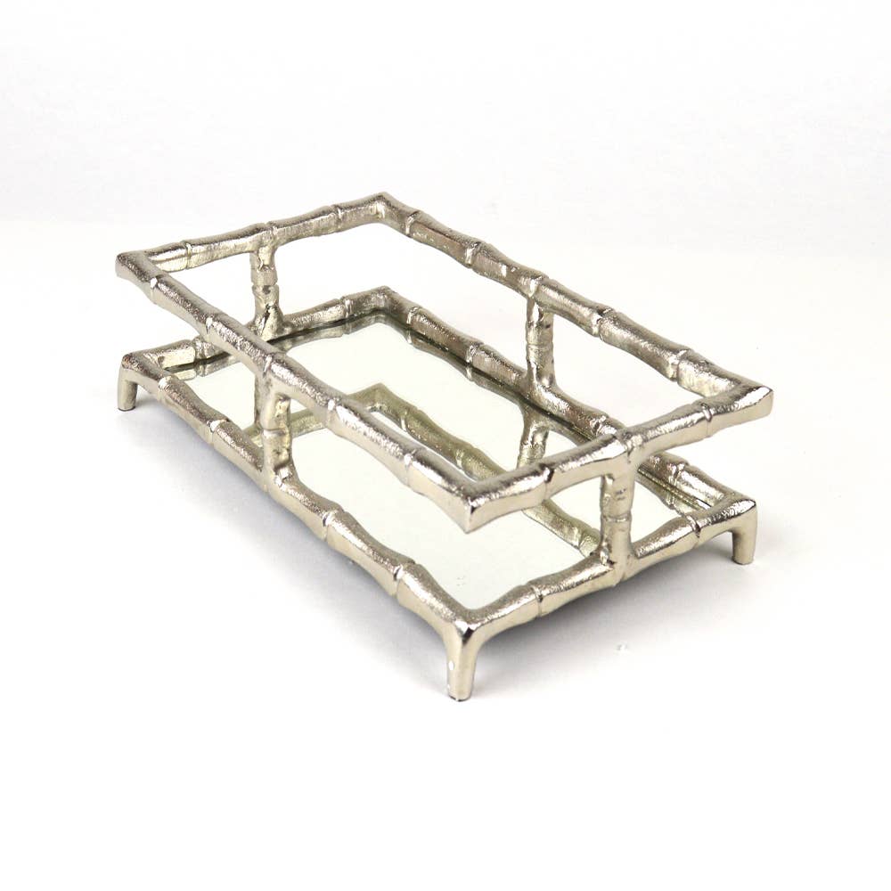 For the hostess who wants to exude effortless elegance every time, our Silver Bamboo Guest Towel Tray is a must-have addition to any entertaining arsenal. Boasting an impressive 9.25” x 5.25” x 2.5” size and a chic aluminum design with a gorgeous silver finish, this tray will provide visual intrigue while keeping your guest towels organized and easily accessible. Thoughtfully designed in the USA and expertly produced using imported materials, you can be sure this piece is of the utmost quality. Whether you’re hosting a small gathering or a large brunch, our Silver Bamboo Guest Towel Tray adds an air of sophistication that won't go unnoticed. Plus, it pairs perfectly with our paper guest towel trays for added convenience!