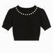 Elevate your wardrobe with this Pearl Neck Line Cropped Top, featuring a graceful pearl neckline and subtle puff sleeves for a refined silhouette. Perfectly versatile, it can be dressed up for elegant occasions or worn casually for effortless style. Crafted for delicate care, hand wash gently and lay flat to dry to maintain its sophisticated finish.